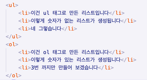 ul, li 태그를 사용합니다