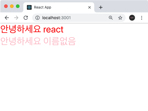한번 App에서 name이 없는 Hello 컴포넌트를 렌더링해보세요.